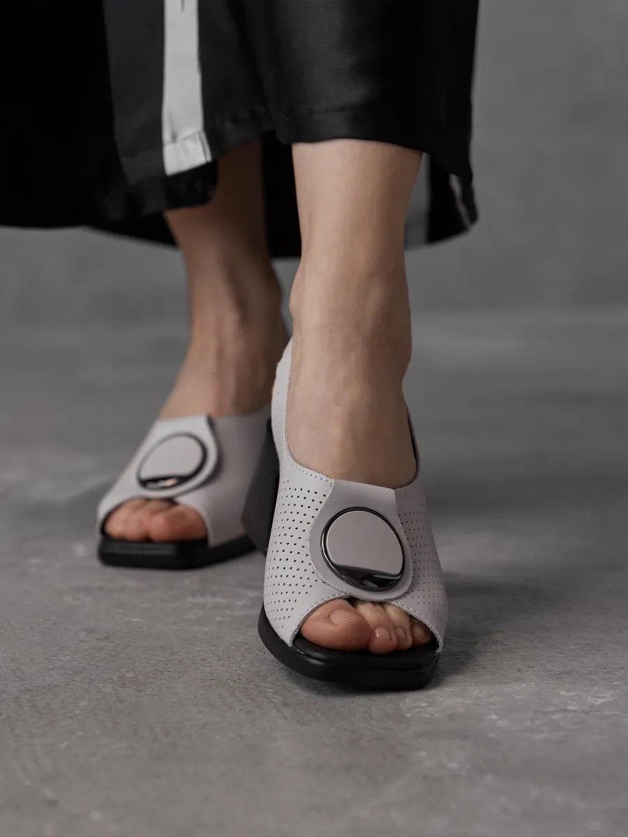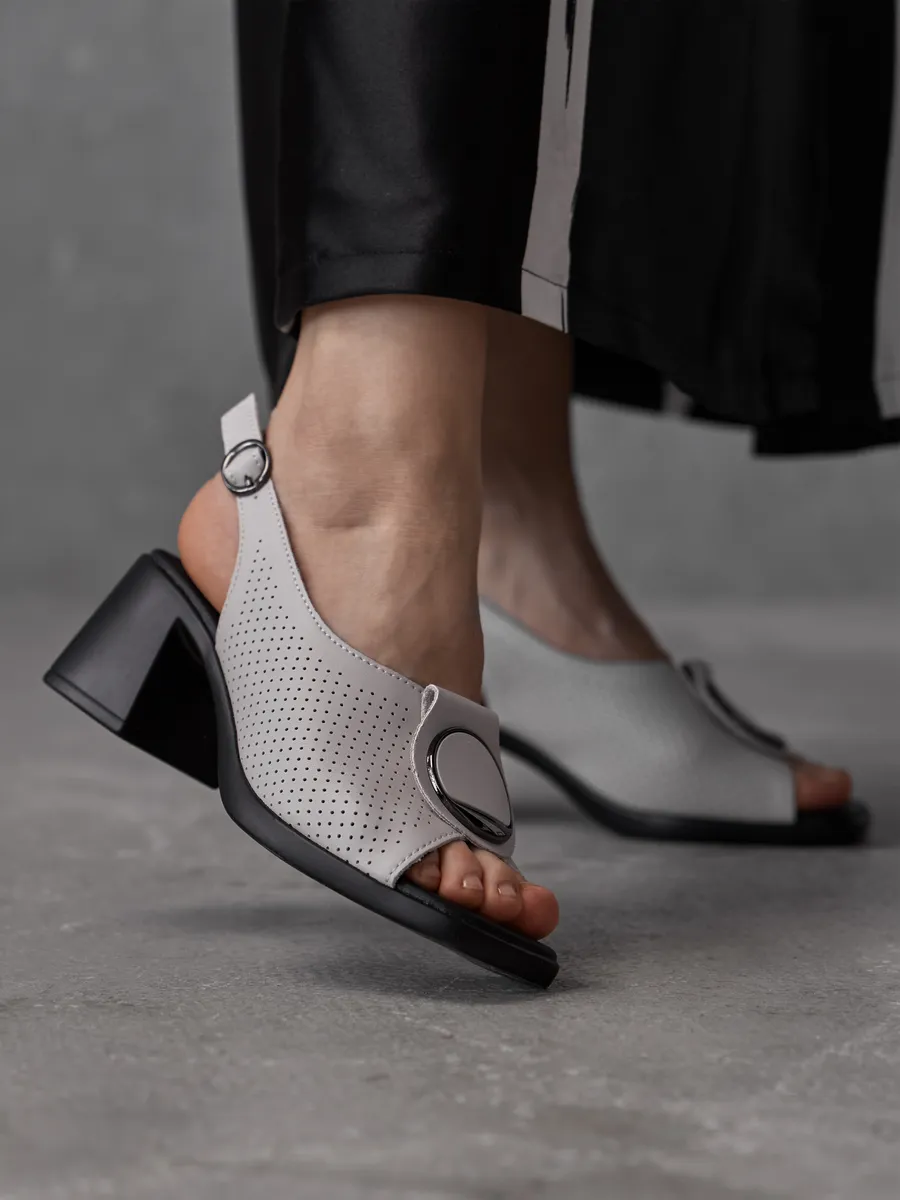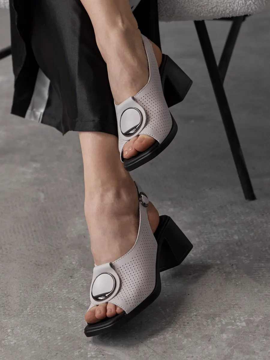 Модель идеально подходит для тёплых дней: открытые детали обеспечивают вентиляцию, а мягкая кожаная стелька гарантирует комфорт с утра до вечера. Благодаря классике формы и современным модным акцентам, эти босоножки — находка для тех, кто хочет чувствовать себя уверенно и выглядеть безупречно.