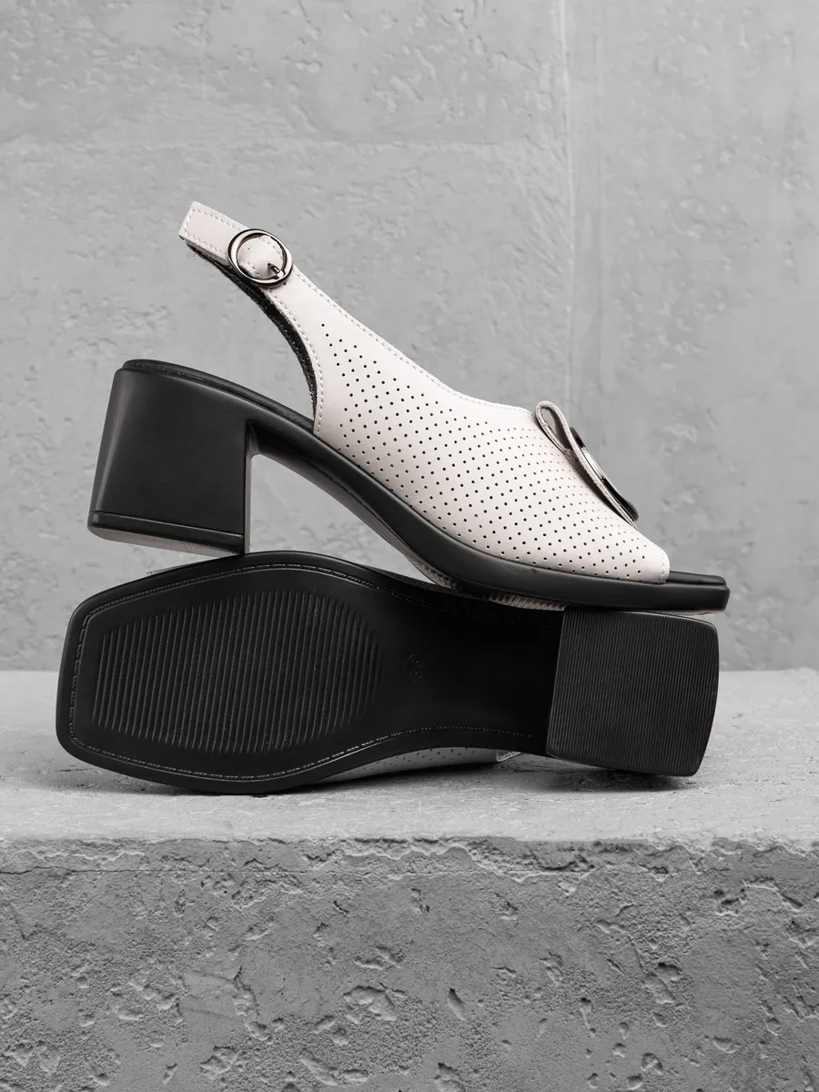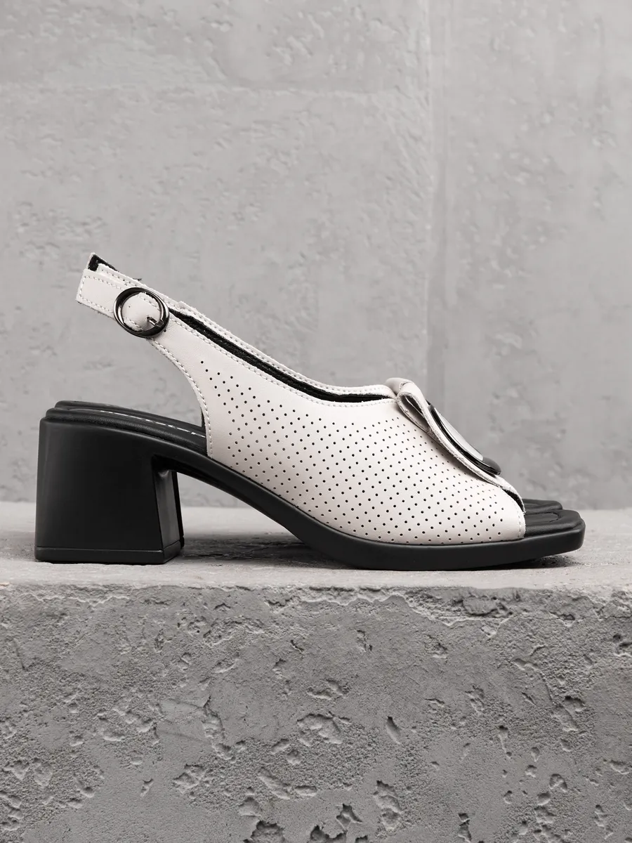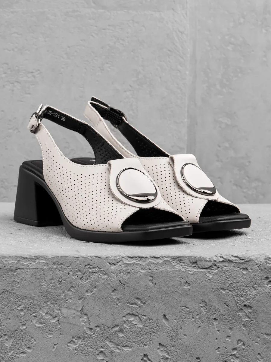 Модель идеально подходит для тёплых дней: открытые детали обеспечивают вентиляцию, а мягкая кожаная стелька гарантирует комфорт с утра до вечера. Благодаря классике формы и современным модным акцентам, эти босоножки — находка для тех, кто хочет чувствовать себя уверенно и выглядеть безупречно.