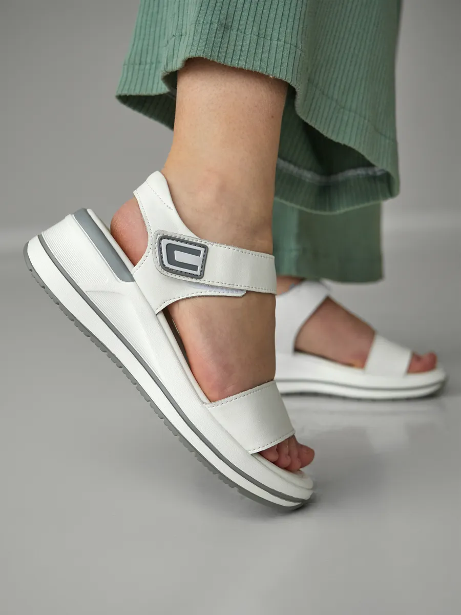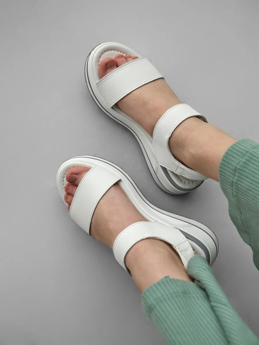 Лето — время лёгкости, свободы и ярких образов. Женские босоножки на платформе — стильная модель сочетает в себе последние тренды 2025 года, удобство и универсальность. Выполненные из композитной кожи, они сочетают в себе элегантность, удобство и модные тренды. Лёгкий и стильный дизайн делает их универсальной обувью для женщин, которые ценят комфорт и эстетику. Мягкая стелька из экокожи идеально подстраивается под ногу, создавая ощущение комфорта при каждом шаге. Открытый носок и пятка позволяют ногам дышать, а удобные ремешки на липучках обеспечивают быструю фиксацию и регулируемую посадку. Модель оснащена гибкой и лёгкой подошвой, которая добавляет устойчивости и подходит как для повседневных прогулок, так и для длительных поездок, так как благодаря хорошим амортизирующим свойствам снижает нагрузку на стопу. Натуральные материалы верха делают босоножки прочными и долговечными, а их белый цвет придаёт элегантность и легко сочетается с летним гардеробом. Эти босоножки станут отличным дополнением к повседневному образу. Благодаря стильному дизайну и удобной посадке они отлично смотрятся с летними платьями, юбками, шортами и лёгкими брюками. Добавьте в свою коллекцию модные женские босоножки на платформе и наслаждайтесь комфортом, лёгкостью и элегантностью!