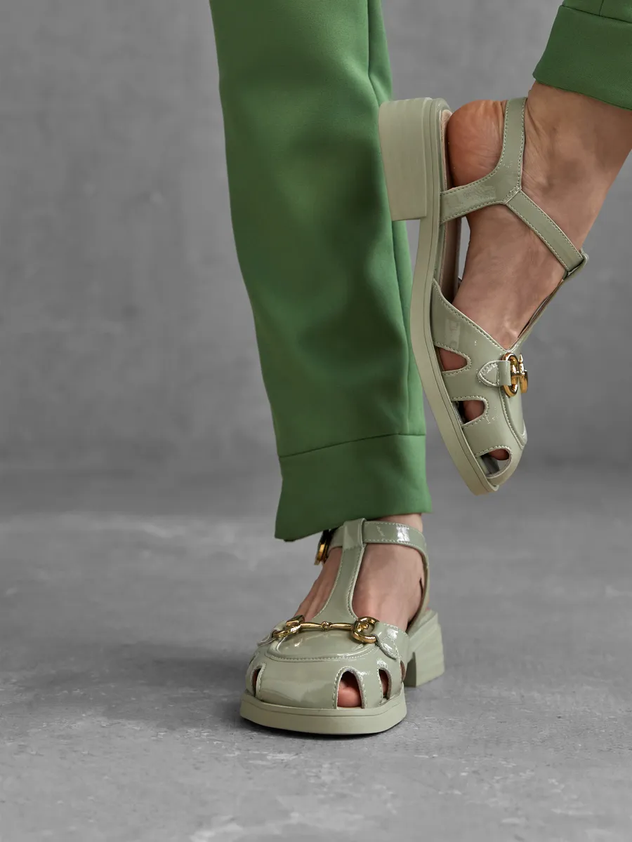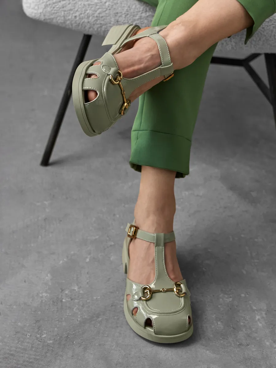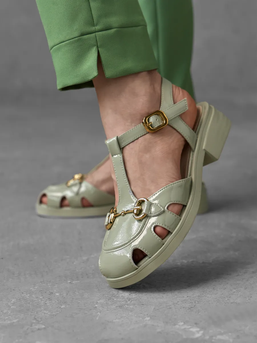 Благодаря сочетанию модного дизайна, лаковой фактуры, и закрытого мыска, босоножки смотрятся особенно эффектно в нарядных и праздничных образах. Они подойдут как под лёгкое летнее платье, так и под более классический наряд. Это идеальный выбор для женщин, которые следят за модой, любят красивую, нарядную и практичную обувь.
