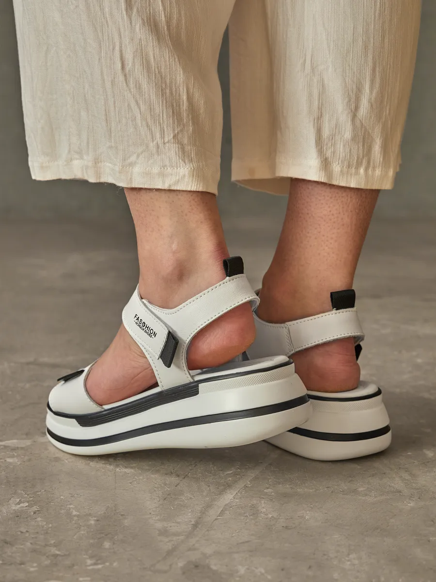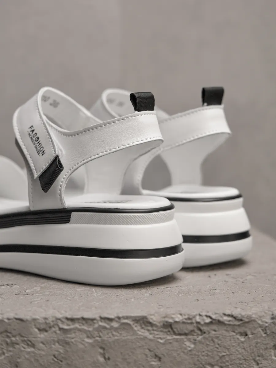 Лето — время лёгкости, свободы и ярких образов. Женские босоножки на платформе —  стильная модель сочетает в себе последние тренды 2025 года, удобство и универсальность. Выполненные из композитной кожи, они сочетают в себе элегантность, удобство и модные тренды. Лёгкий и стильный дизайн делает их универсальной обувью для женщин, которые ценят комфорт и эстетику. Мягкая стелька из экокожи идеально подстраивается под ногу, создавая ощущение комфорта при каждом шаге. Открытый носок и пятка позволяют ногам дышать, а удобные ремешки на липучках обеспечивают быструю фиксацию и регулируемую посадку. Модель оснащена гибкой и лёгкой подошвой, которая добавляет устойчивости и подходит как для повседневных прогулок, так и для длительных поездок, так как благодаря хорошим амортизирующим свойствам снижает нагрузку на стопу. Натуральные материалы верха делают босоножки прочными и долговечными, а их белый цвет придаёт элегантность и легко сочетается с летним гардеробом. Эти босоножки станут отличным дополнением к повседневному образу. Благодаря стильному дизайну и удобной посадке они отлично смотрятся с летними платьями, юбками, шортами и лёгкими брюками. Добавьте в свою коллекцию модные женские босоножки на платформе  и наслаждайтесь комфортом, лёгкостью и элегантностью!