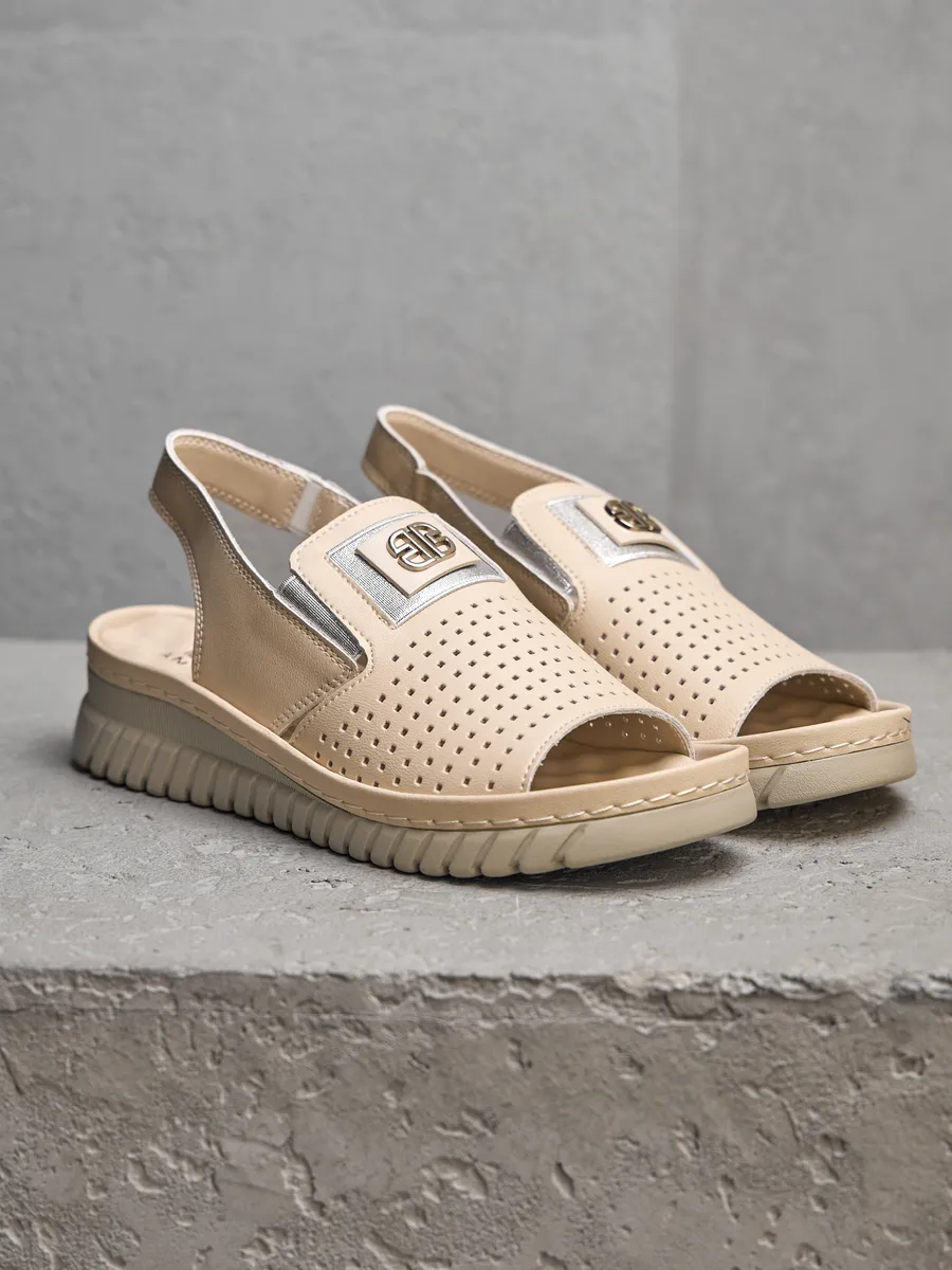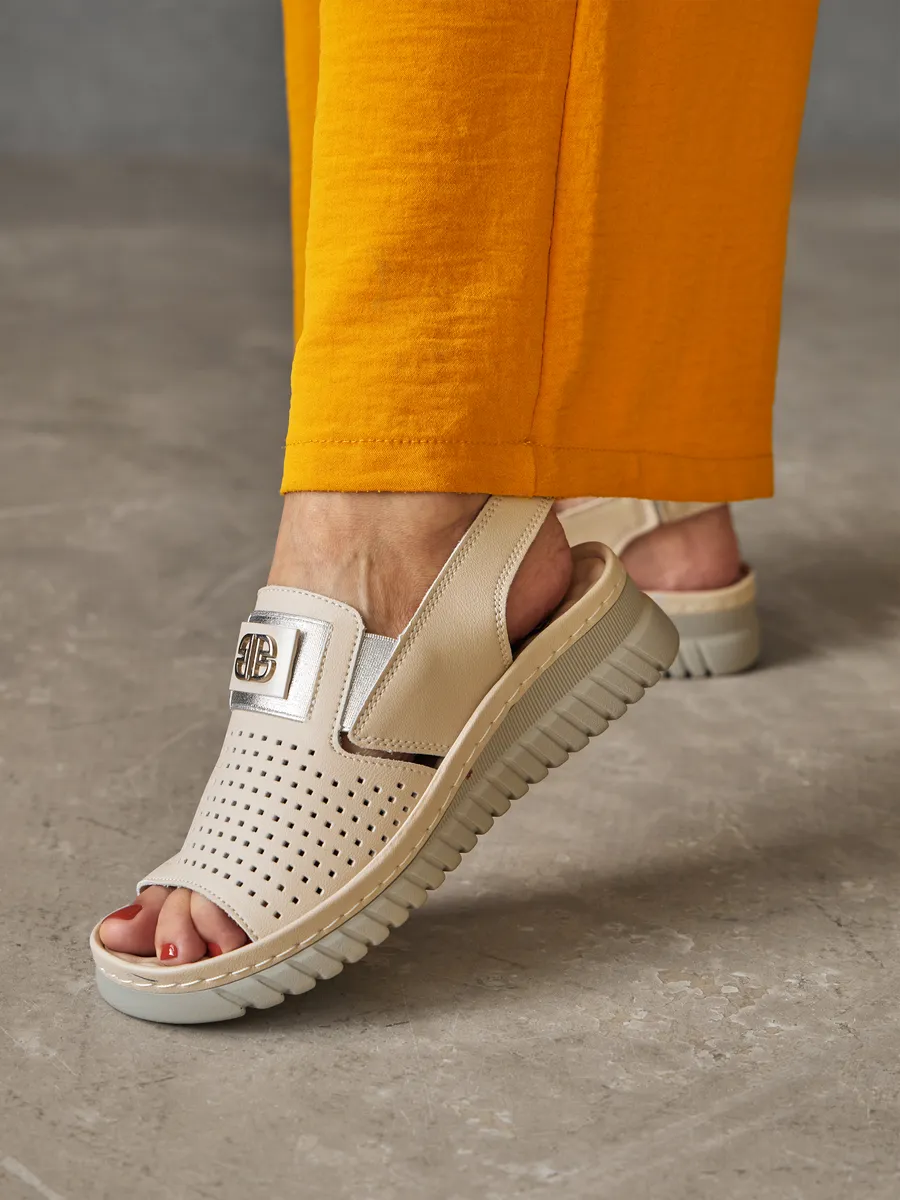 Эта модель из натуральной кожи создана для тех, кто стремится к гармонии между стилем и практичностью. Белый цвет делает босоножки универсальными, позволяя им легко сочетаться с платьями, юбками, сарафанами и лёгкими брюками, добавляя образу нотку свежести и элегантности. Лаконичный дизайн с открытым носком и пяткой обеспечивает естественную вентиляцию, предотвращая перегрев ног даже в самые жаркие дни.