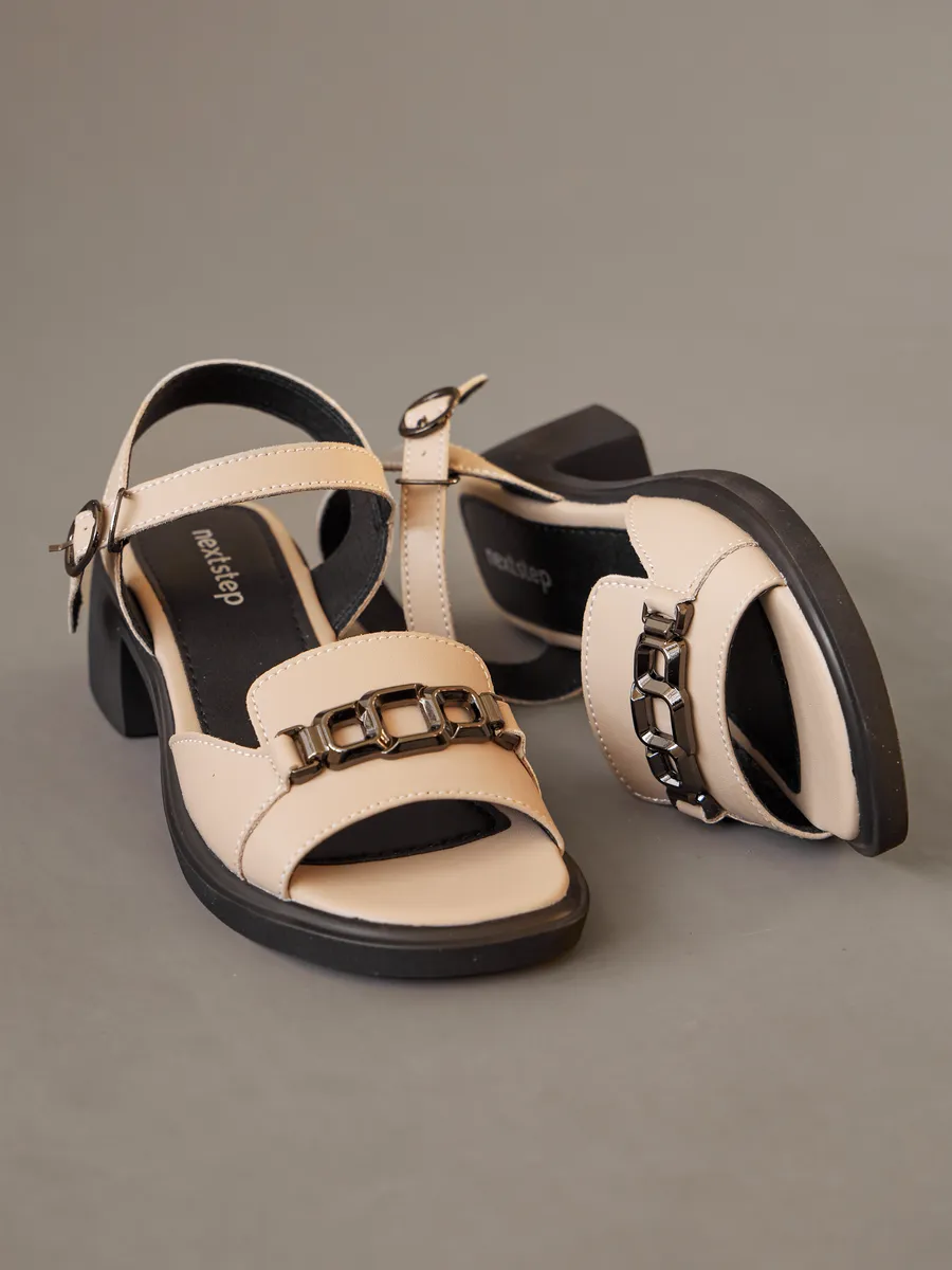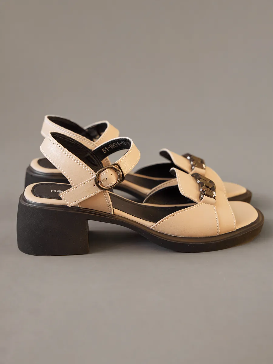 Босоножки женские летние на каблуке бежевые 51-BKY4-12-108k