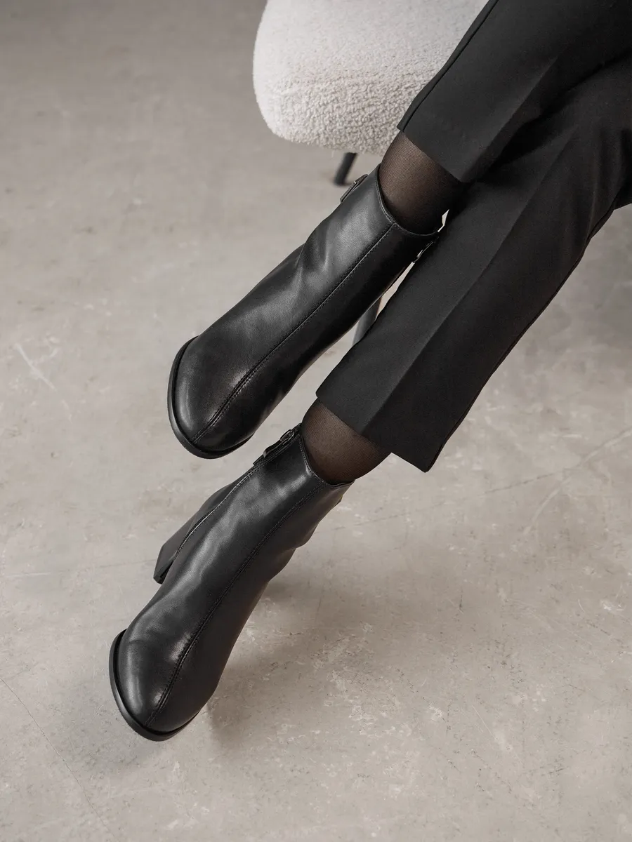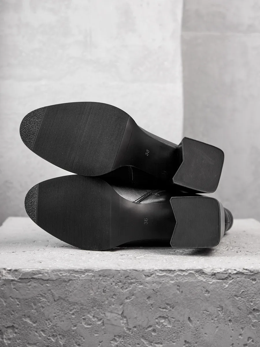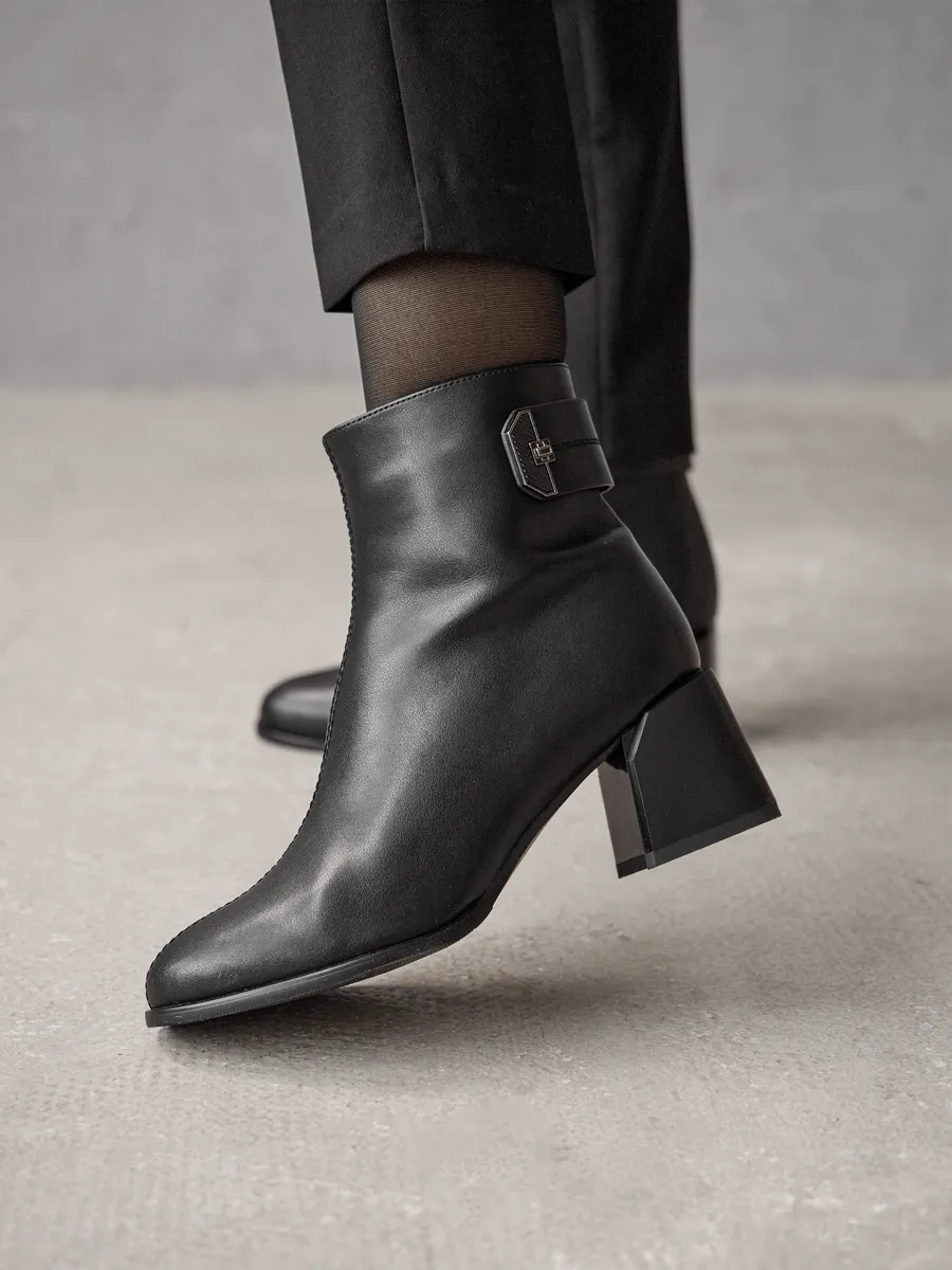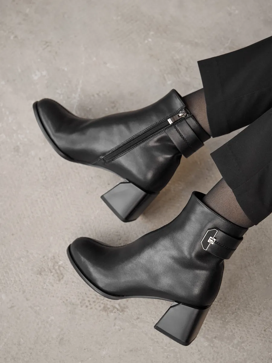Практичные и трендовые, ботильоны станут незаменимыми в гардеробе для офиса, поездок, прогулок и даже вождения автомобиля. Их низкий каблук подчёркивает стройность ног, а классический черный цвет и дизайн делают их универсальным акцентом в любом образе. Независимо от вашего стиля, эта модель ботильонов станет идеальным выбором для создания элегантных и комфортных луков на каждый день.