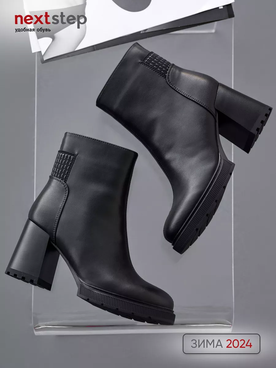 Ботильоны на каблуке выполнены из натуральной кожи и дополнены стильными вставками, придающими модели современный вид. Каблук средней высоты добавляет женственности и элегантности, а удобная колодка позволяет носить обувь весь день без усталости. Черные ботильоны отлично сочетаются с различными нарядами, будь то офисные образы или повседневные варианты, и гармонично вписываются в любой гардероб.