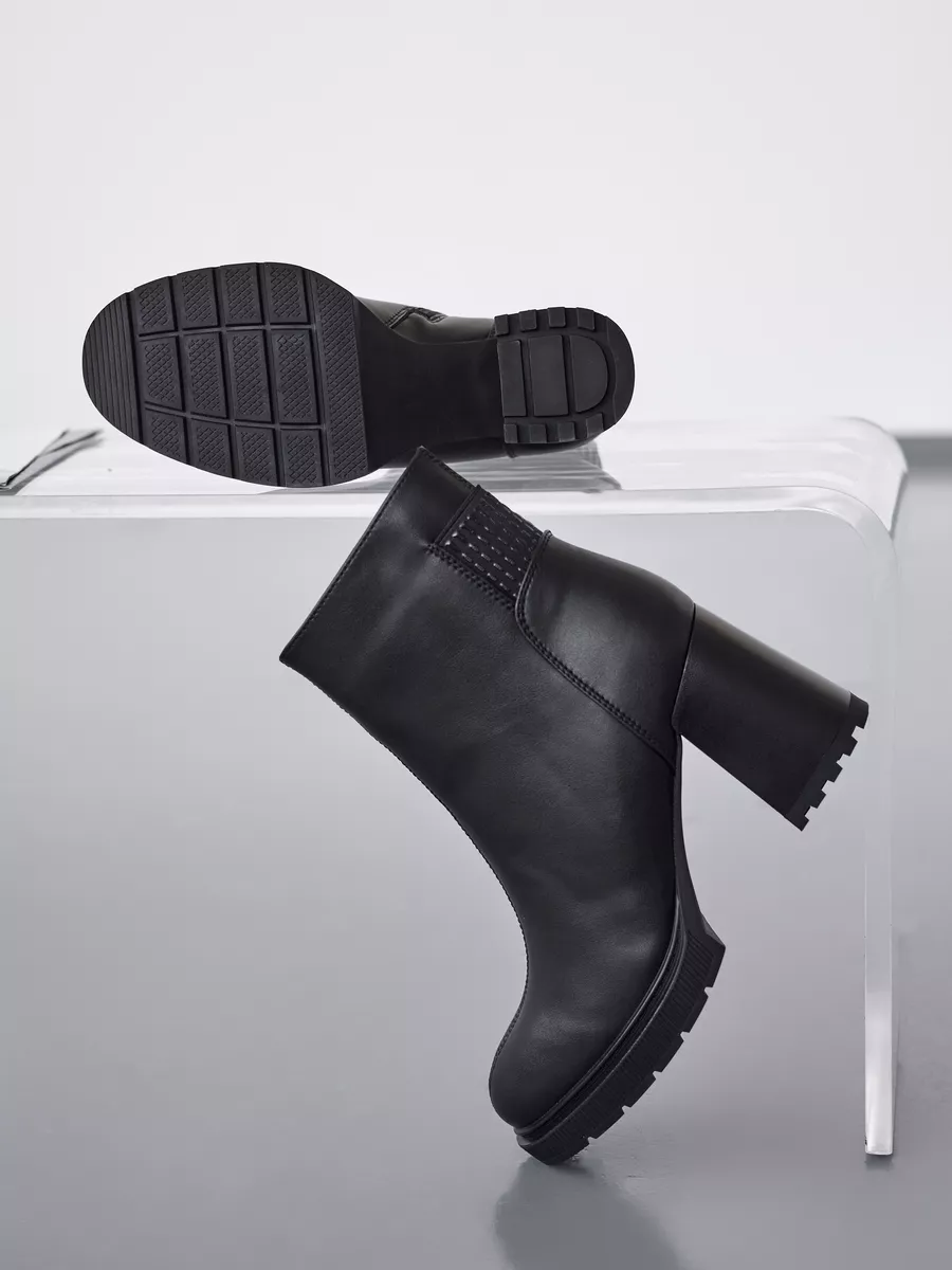 Ботильоны на каблуке выполнены из натуральной кожи и дополнены стильными вставками, придающими модели современный вид. Каблук средней высоты добавляет женственности и элегантности, а удобная колодка позволяет носить обувь весь день без усталости. Черные ботильоны отлично сочетаются с различными нарядами, будь то офисные образы или повседневные варианты, и гармонично вписываются в любой гардероб.