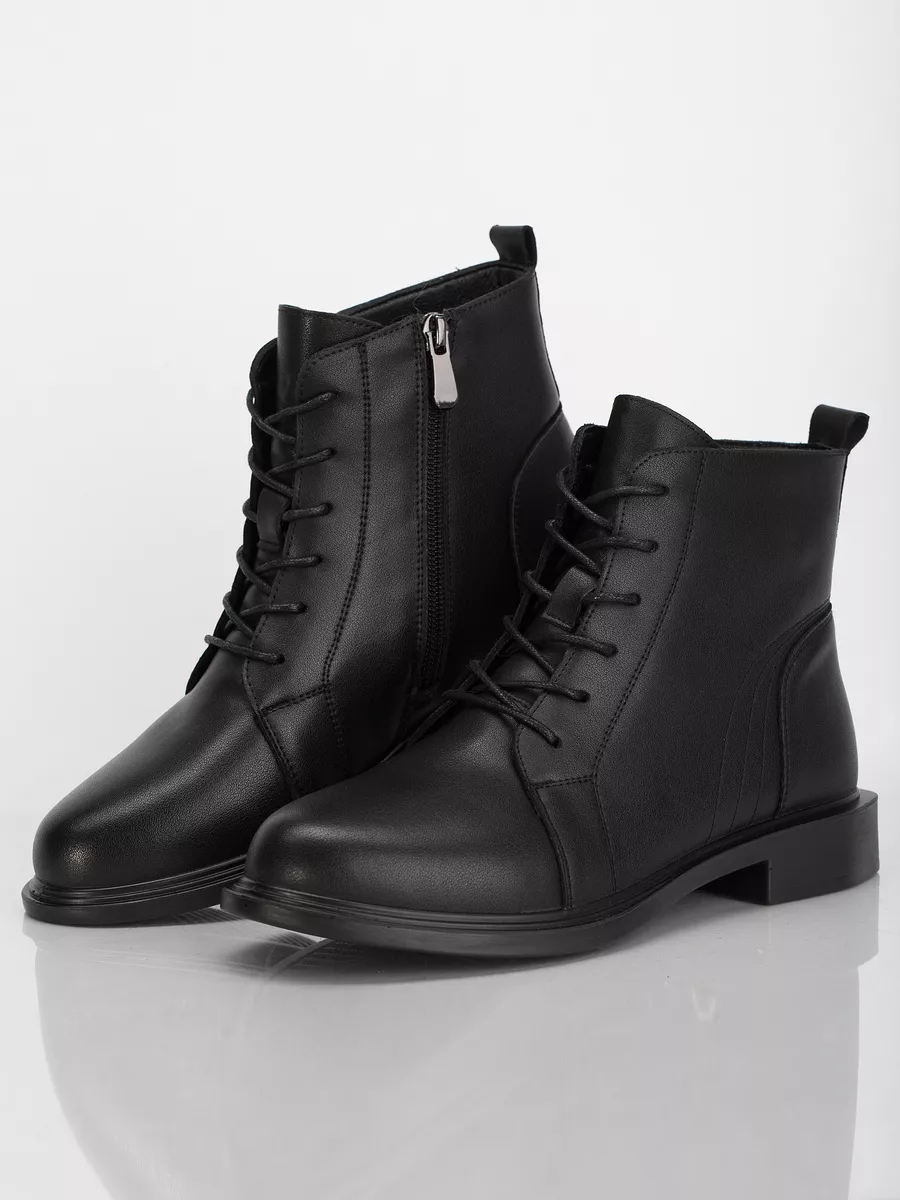 Ботинки идут размер в размер, длина стельки в 38 размере 24,5 см, длина стельки увеличивается на 0,5 см с увеличением размера. Модель хорошо подойдёт на среднюю и полную стопу. Кожаные ботинки на массивной подошве из ПУ (Полиуретан). Толщина подошвы выше 1см, чтобы стопа не ощущала дискомфорт от неровности поверхностей. Кожаные ботинки эластичные, прочные, долговечные, они хорошо пропускают воздух и не позволяют стопе потеть, создавая комфортные условия на весь день. Ботинки застёгиваются на молнию и обеспечивают идеальную посадку, которую легко отрегулировать с помощью шнуровки. Материал подкладки - натуральная байка. Подкладка из натуральной байки обеспечивает дополнительный комфорт Вашим ногам, ощущение мягкости. Материал дышит и сохраняет тепло.