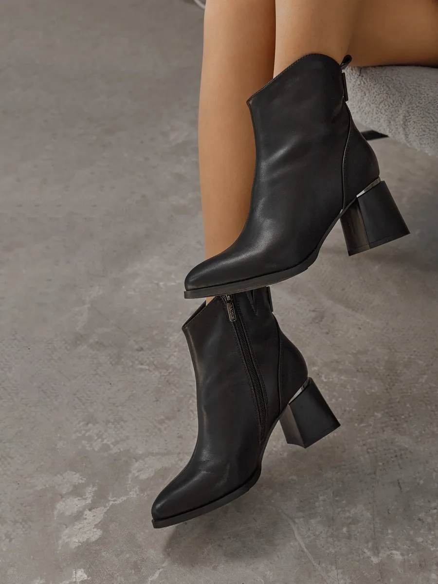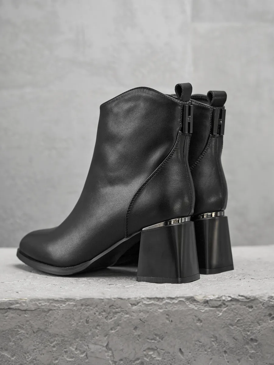 Демисезонные ботильоны имеют низкий устойчивый каблук, который добавляет элегантности, но при этом остаётся удобным даже при длительной носке. Лёгкая и гибкая подошва создаёт амортизацию, снижая нагрузку на ноги, а мягкая внутренняя подкладка поддерживает оптимальный микроклимат внутри обуви. Благодаря анатомической посадке, ботинки комфортно сидят даже на широкой стопе, не сдавливая ногу.