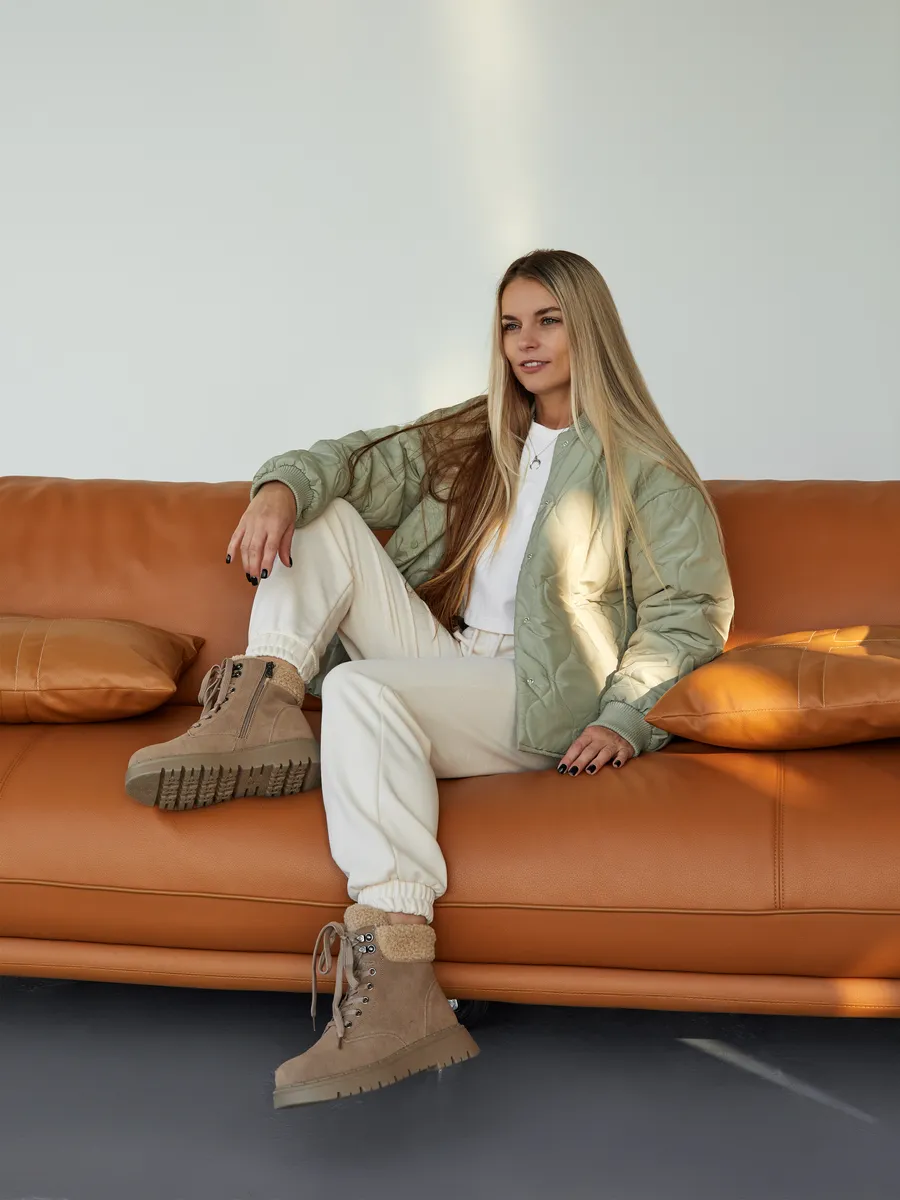 Эти бежевые зимние ботинки на платформе обеспечат отличную устойчивость на скользких поверхностях. Натуральная съемная шерстяная стелька обеспечит тепло и комфорт ваших ног в холодный сезон. Высококачественные материалы гарантируют долговечность, устойчивы к истиранию и идеально подходят для зимнего периода.
