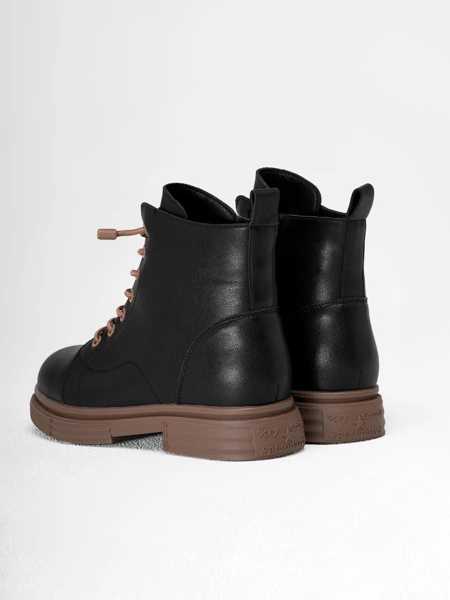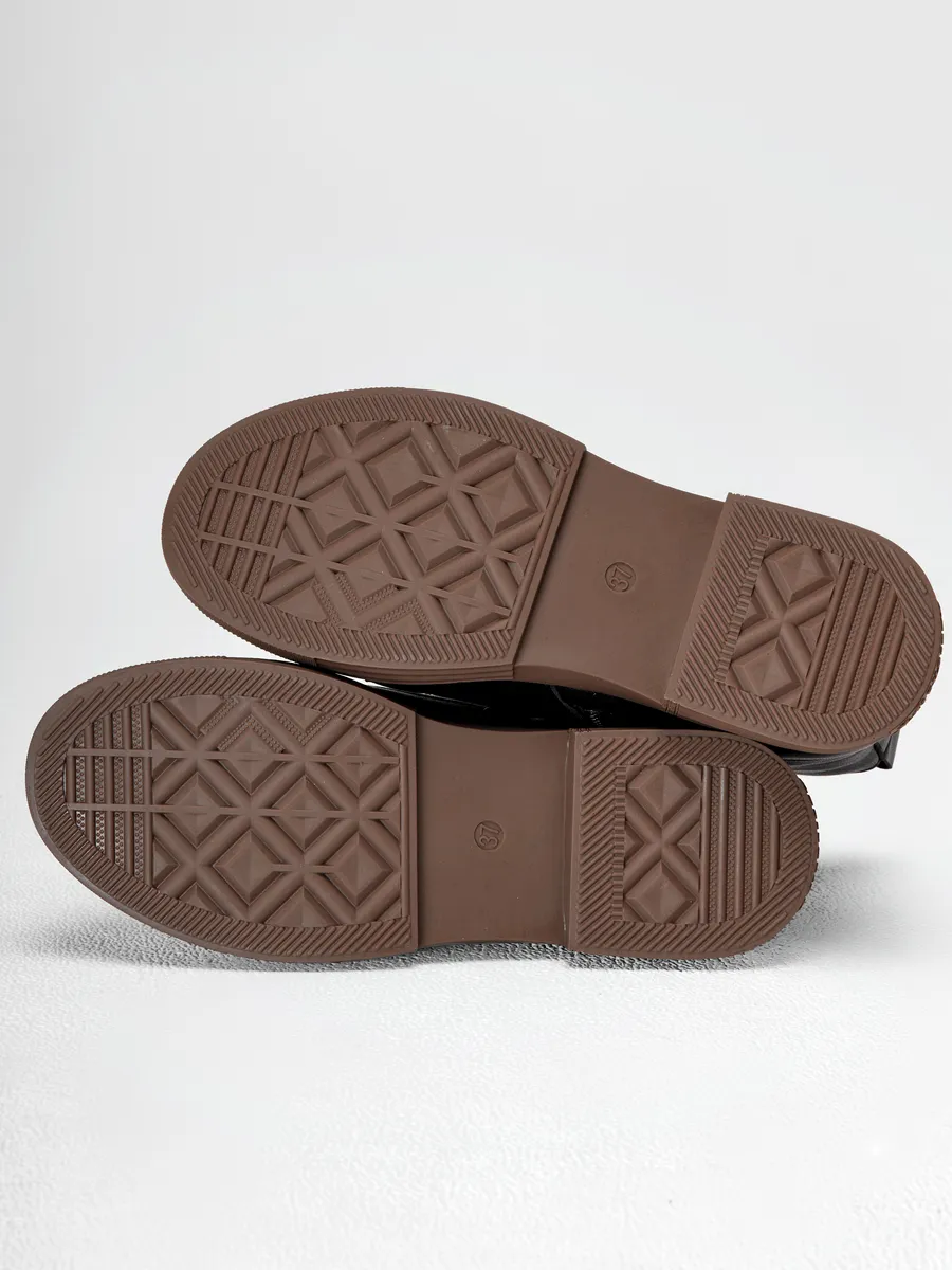 Эти стильные ботинки на толстой подошве и невысоком каблуке созданы для женщин и девушек, которые ценят не только комфорт, но и моду. Изготовленные из натуральной кожи, они обещают долгий срок службы и приятное ощущение носке. Кожаные ботинки согреют в холодную зиму 2025 года благодаря утепленной шерсти внутри.