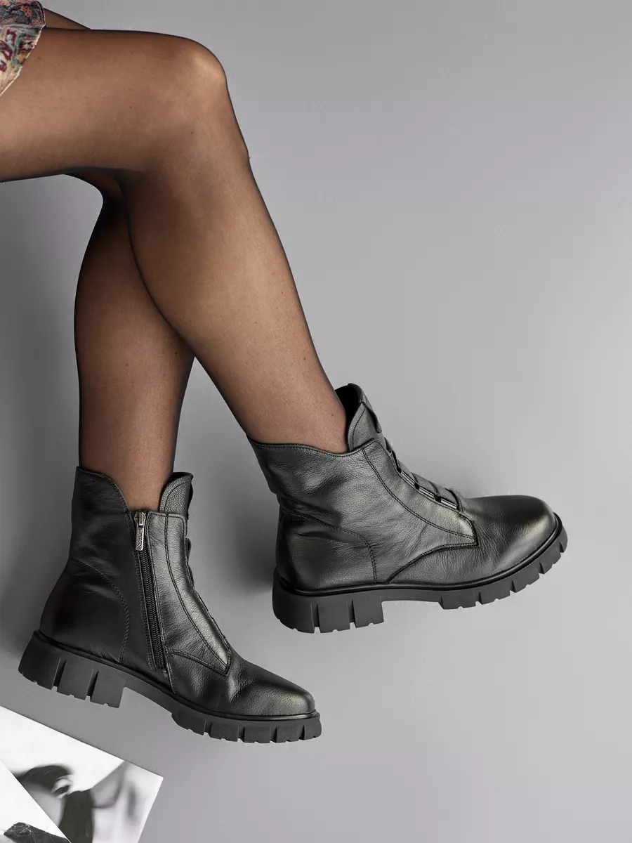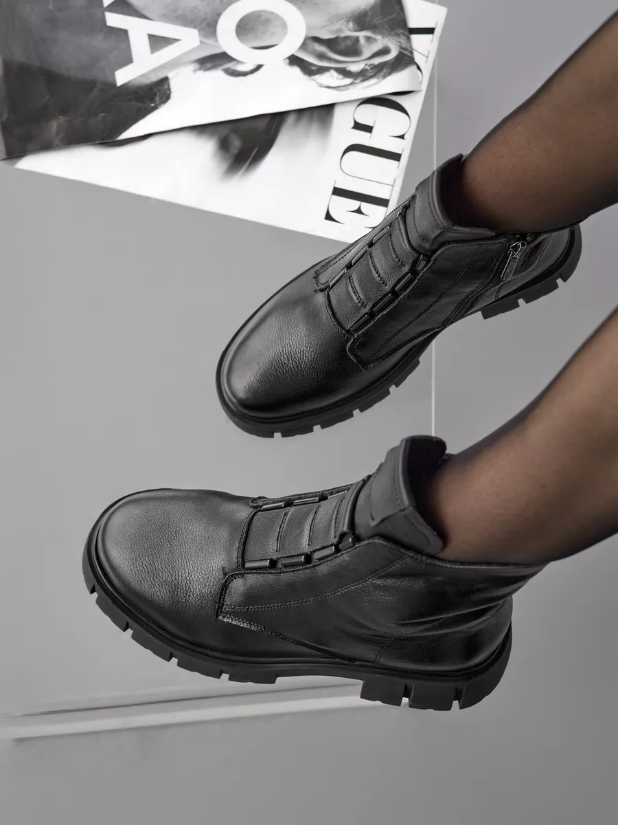 Эти женские ботинки специально разработаны для зимы, обеспечивая высокий уровень комфорта. Изготовленные из натуральной кожи, они гарантируют, что ваши ноги останутся теплыми в холодное время года. Эти утепленные сапоги идеально подходят для тех, кто ищет стильные и практичные решения. Полуботинки на платформе создают модные образы и обеспечивают уверенность на скользких поверхностях благодаря нескользящей подошве.