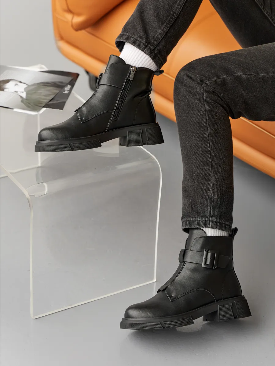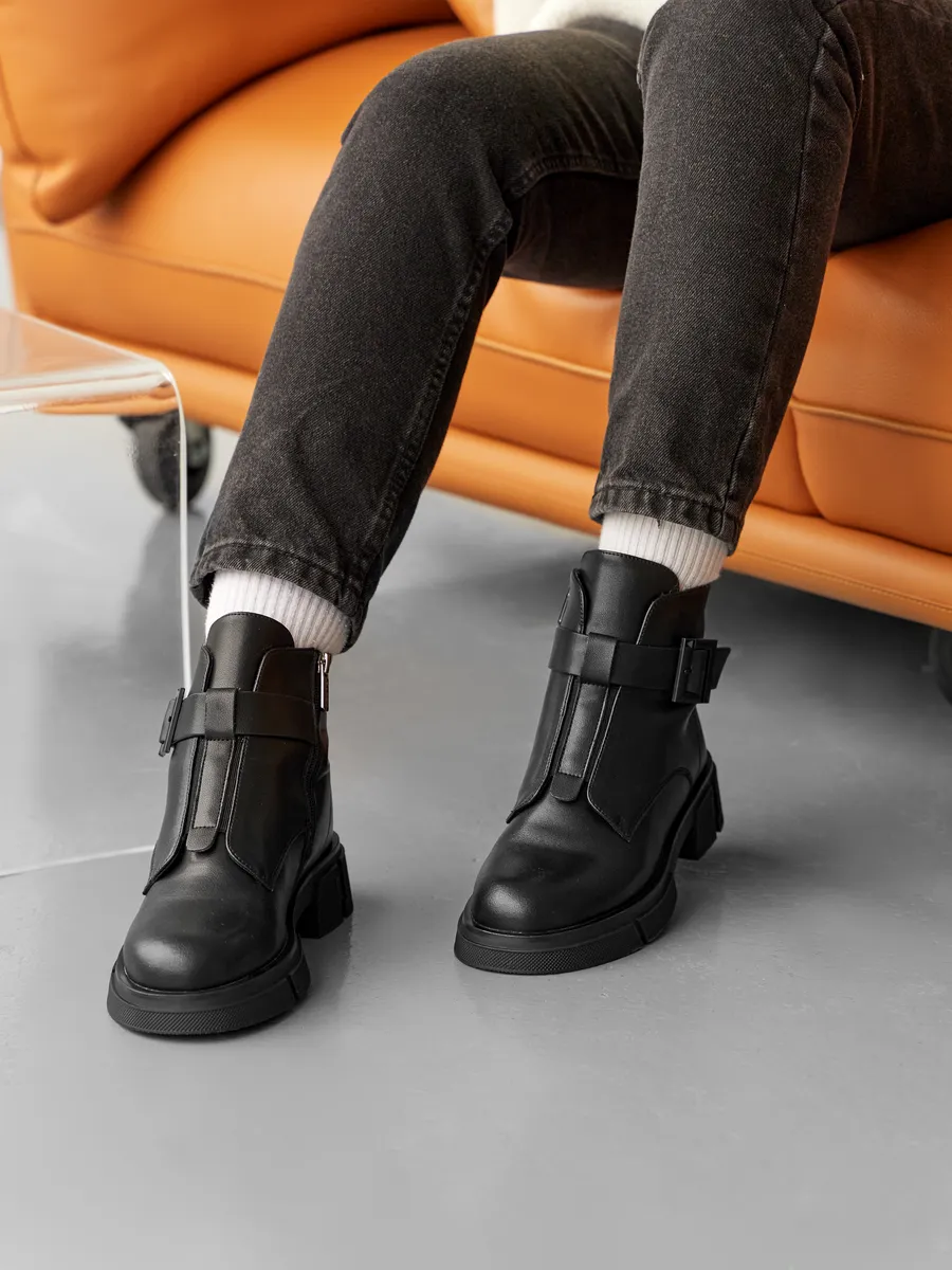 Обувь продумана до мелочей: оснащена удобной молнией для быстрого надевания и снятия, что оценит каждая девушка. Ремешок с пряжкой добавляет изюминку классическому дизайну сапожек.
