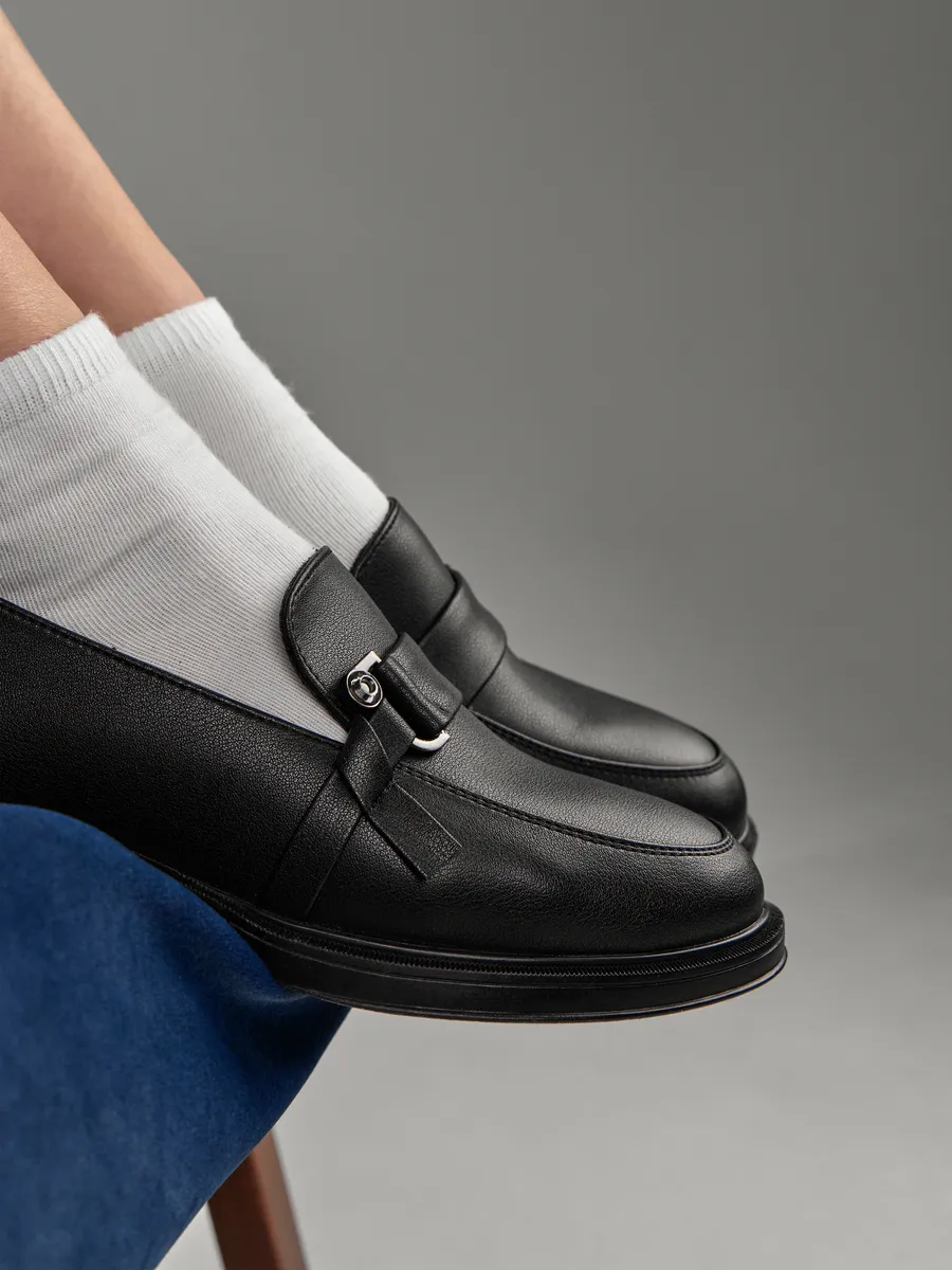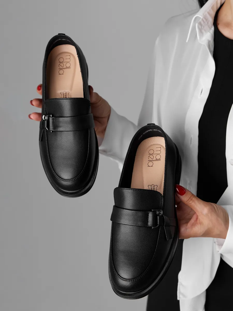 Эти лоферы женские из натуральной кожи станут незаменимой частью вашего гардероба, обеспечивая элегантность, комфорт и универсальность для любого сезона. Выполненные в классическом чёрном цвете, они идеально подходят для весны, осени 2025 года. Благодаря сочетанию практичного дизайна и высококачественных материалов, эти туфли легко впишутся в любой образ, будь то деловой, повседневный или праздничный.