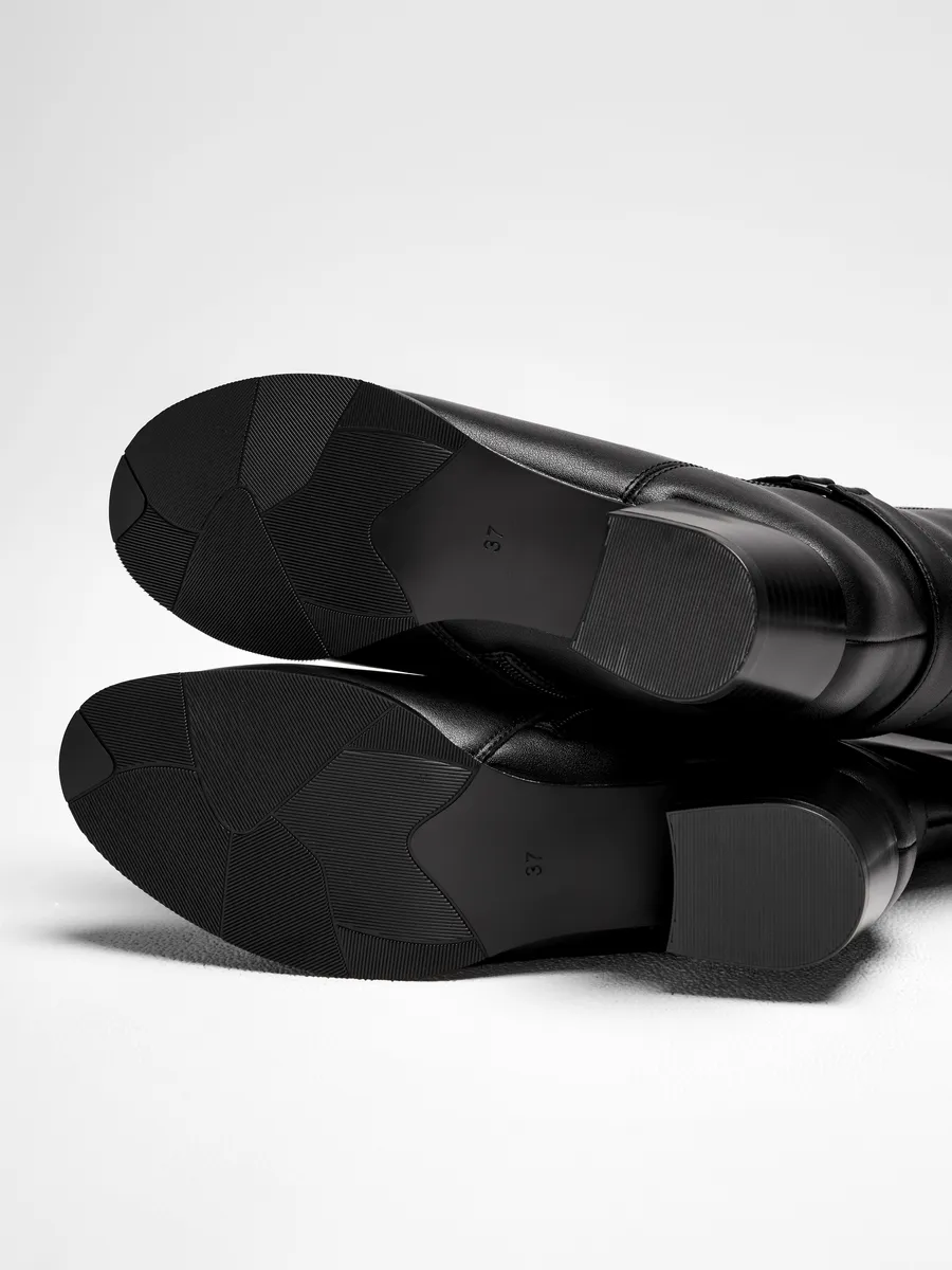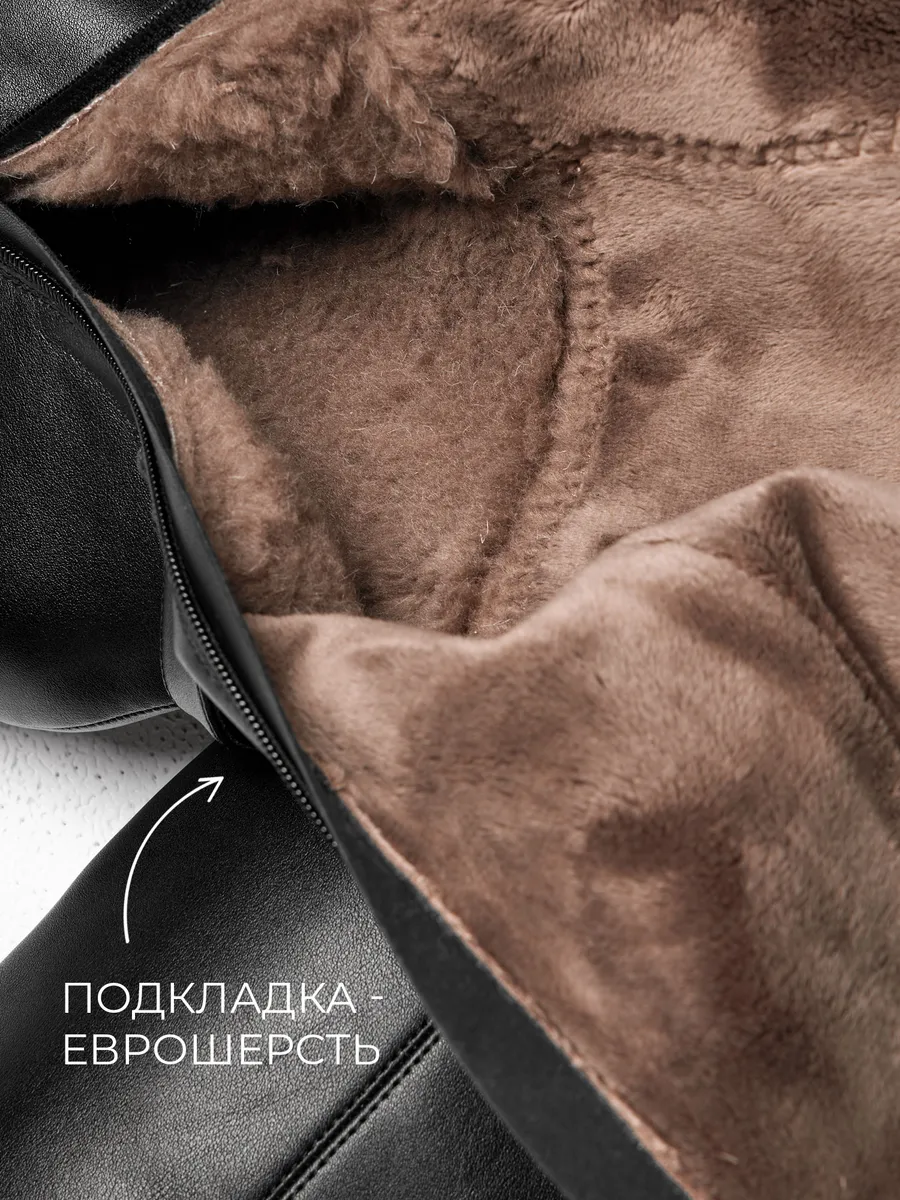 Сапоги имеют длинное голенище, что придаёт им изысканный вид. Они подойдут для проблемных стоп. Классический чёрный цвет делает их универсальными и подходящими для любого наряда — будь то повседневный или праздничный. Теплая съемная шерстяная стелька с ортопедическим эффектом и утеплённая подкладка обеспечивают комфорт и тепло даже в самые холодные дни.