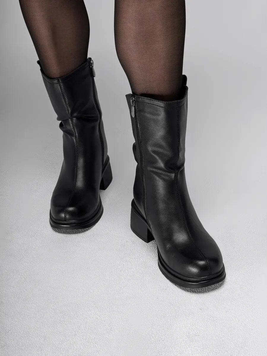 Классический черный цвет полусапог позволяет им стать универсальной деталью вашего гардероба. Они гармонично сочетаются с повседневной одеждой, кэжуал-образами, а также могут дополнять праздничные и вечерние наряды, создавая завершенный стильный образ.