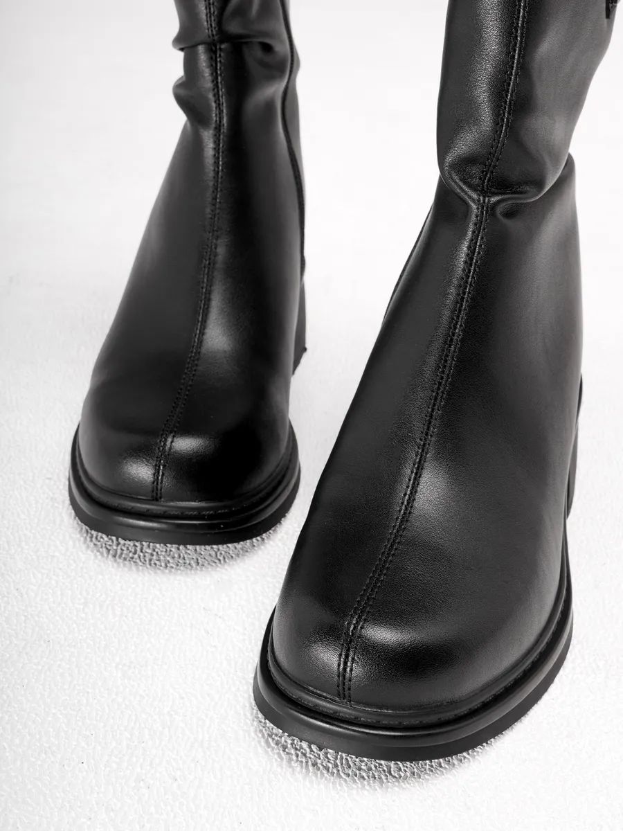 Модель на устойчивом каблуке идеально соответствует актуальным трендам 2025 года создавая визуально стройный и изящный образ.