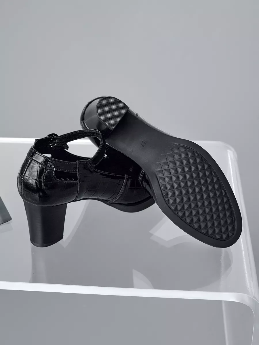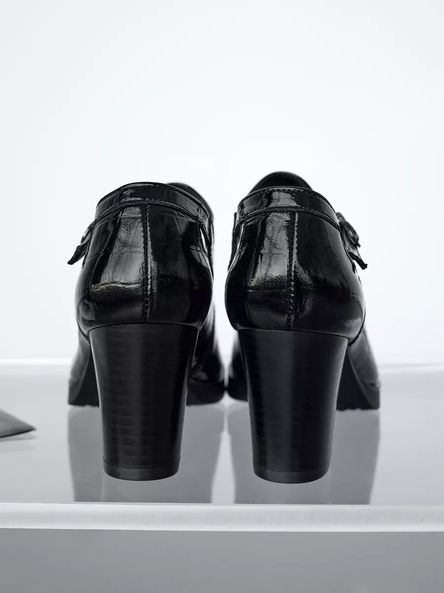 Наши туфли изготовлены из натуральной кожи, что гарантирует долговечность и стильный блеск. В коллекции представлены модные и классические модели, включая черные лакированные туфли на устойчивом каблуке. Легкие и удобные, они обеспечат вам комфорт при ходьбе, даже на протяжении длительного времени.