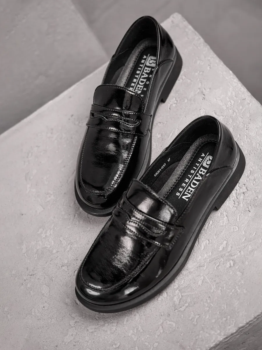 Лоферы маломерят на 0,5 - 1 размер. Ориентируйтесь на длину стельки указанную в размерном ряде. Туфли женские лаковые идут размер в размер, подходят на среднюю и увеличенную полноту ноги (7-8), выполнены из мягкой натуральной лаковой кожи, которая является дышащим и наиболее практичным материалом, она проста в уходе и долго сохраняет презентабельный внешний вид. Материал стельки высококачественная дышащая экокожа. Несъемная стелька амортизирующая и упругая. Такое сочетание обеспечивает комфортный микроклимат внутри обуви. Устойчивая и супер гибкая подошва из термопластичной резины подходит для межсезонной погоды и отличается хорошей устойчивостью к истиранию и механическим повреждениям, не скользит и обладает амортизационными свойствами, тем самым снимает нагрузку с позвоночника и поглощает удары стопы при ходьбе.