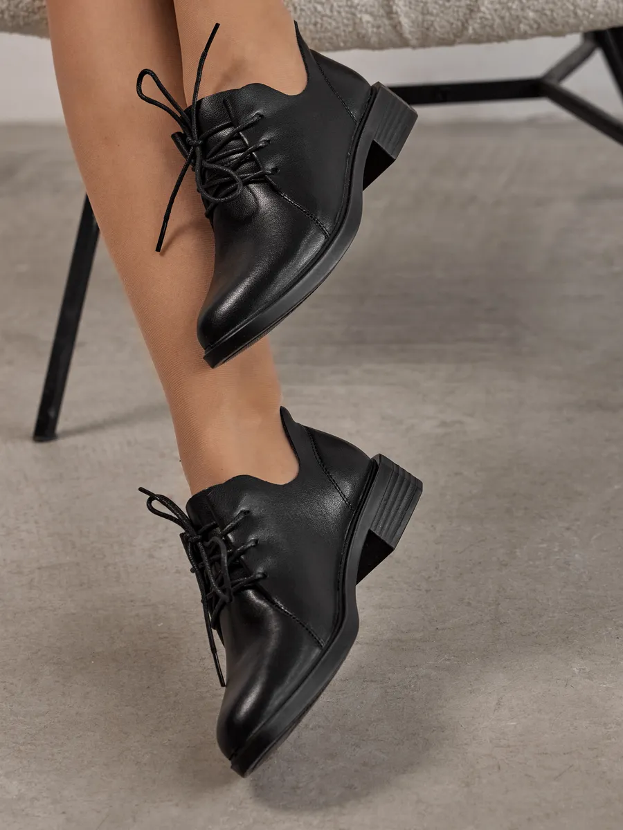 Эти женские туфли из натуральной кожи станут незаменимой частью вашего гардероба, обеспечивая элегантность, комфорт и универсальность для любого сезона. Выполненные в классическом чёрном цвете, они идеально подходят для весны, осени 2025 года. Благодаря сочетанию практичного дизайна и высококачественных материалов, эти туфли легко впишутся в любой образ, будь то деловой, повседневный или праздничный.