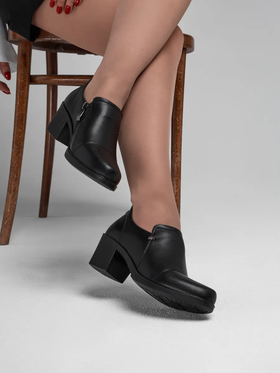 Эти туфли сочетают модные тренды 2025 года с функциональностью. Устойчивый толстый каблук обеспечивает удобство при ходьбе. Внутренняя стелька с ортопедическим эффектом адаптируется под форму стопы, снижая нагрузку и предотвращая усталость даже при длительном ношении.