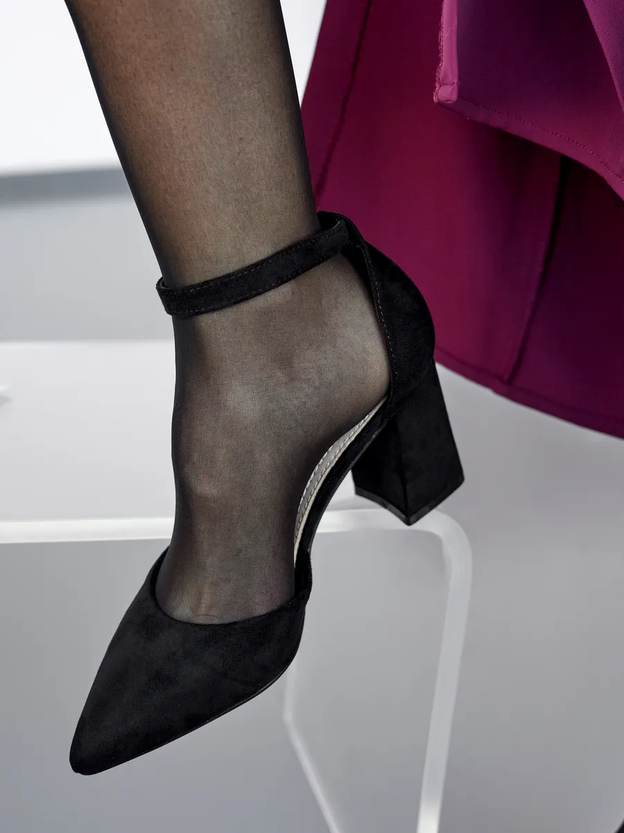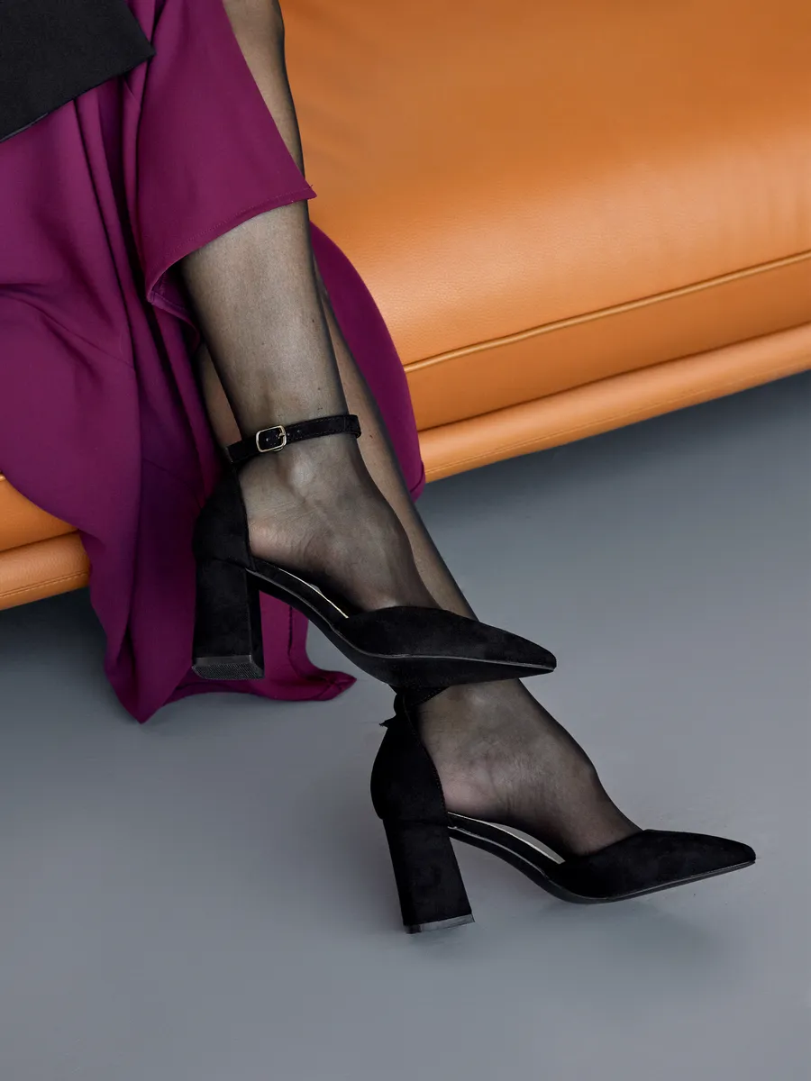 Туфли женские вечерние на каблуке с ремешком велюровые JF18128-2-4k
